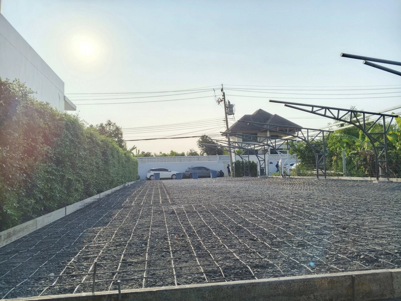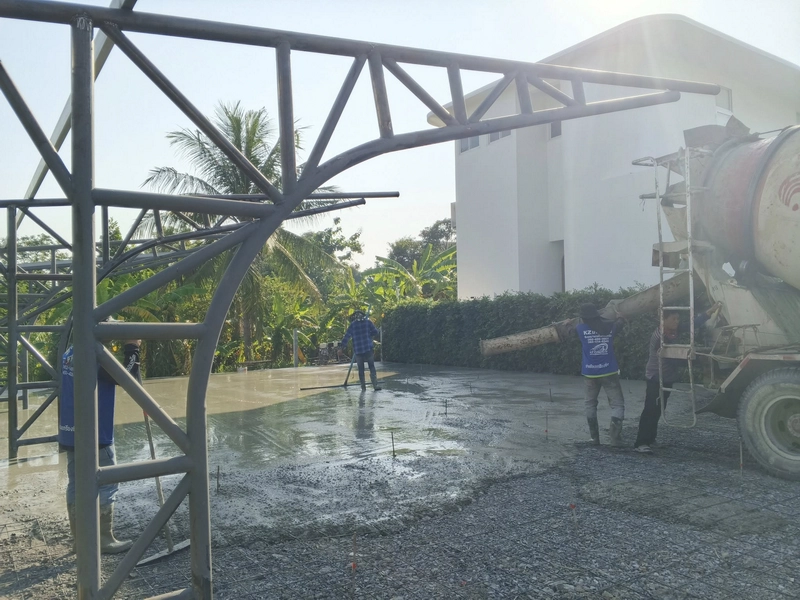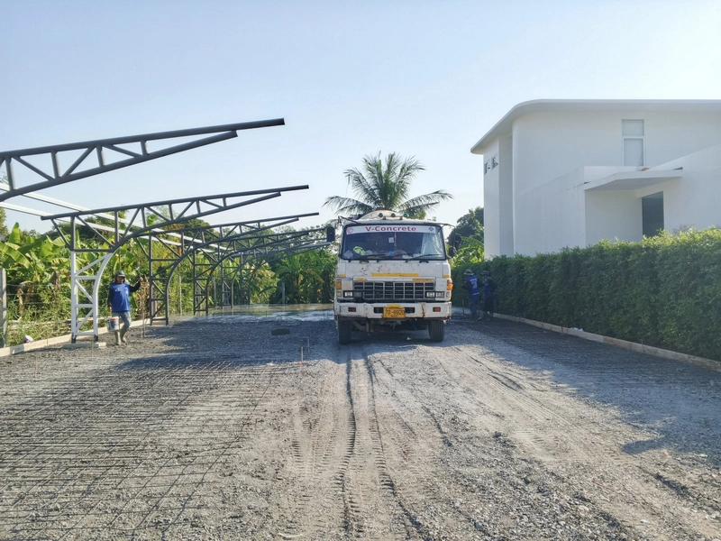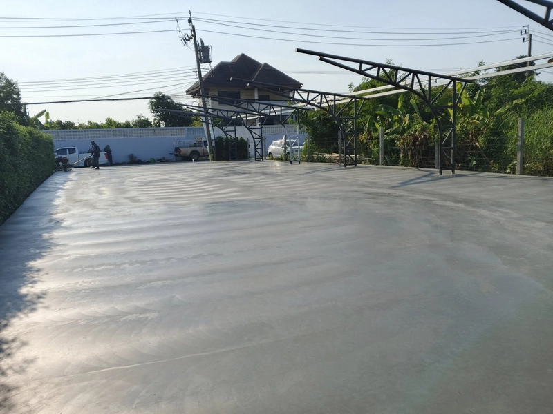 - วัสดุและการเท: ใช้คอนกรีตมาตรฐานจากแพล้นปูน เทความหนาพิเศษถึง 15 เซนติเมตร (รองรับน้ำหนักรถยนต์และรถอเนกประสงค์ได้ทุกประเภท)